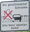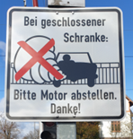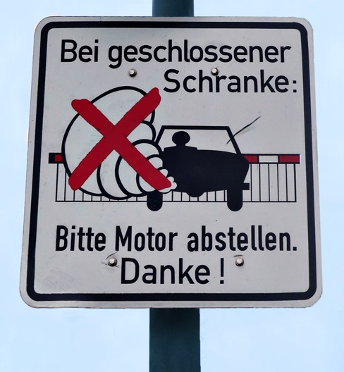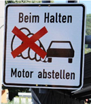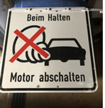 Nach rund 50 Jahren befinden sich immer noch die alten Motor-abschalten-Schilder vor Bahnschranken, Ampeln mit langer Rotphase, an Bus-Bahnhöfen und in öffentlichen wie gewerblichen Bereichen, wo Fahrzeuge längere Zeit stehen und warten und die Verbrennungsmotoren im Leerlaufbetrieb kostbare Energie verbrauchen und Abgasgift und Klimagas produzieren.